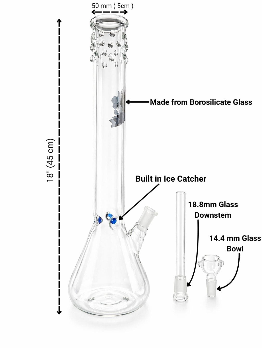 Experience smooth, powerful sessions with this 18-inch glass beaker bong, designed for both performance and durability. Crafted from high-quality borosilicate glass, this piece features a classic beaker base that provides excellent stability and increased water capacity for superior filtration.